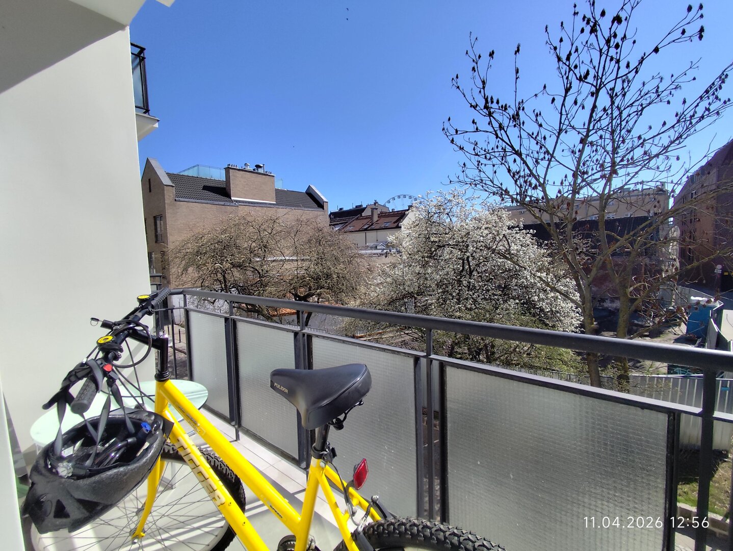 The apartment is very sunny and has a large balcony. The bedroom has a 160 cm wide double bed.