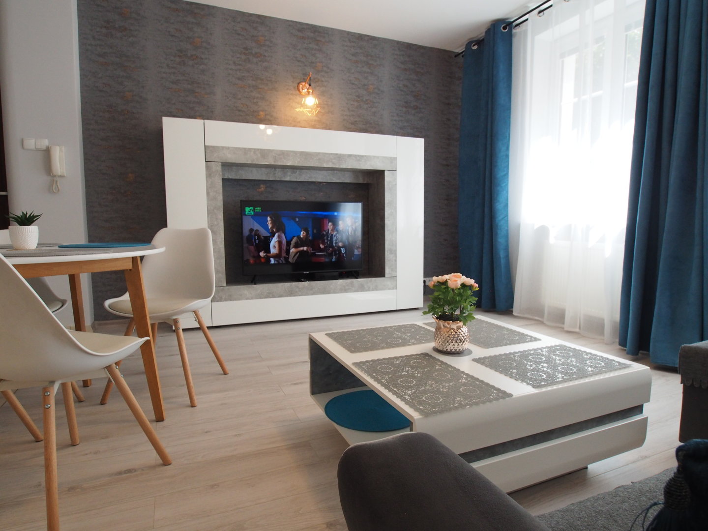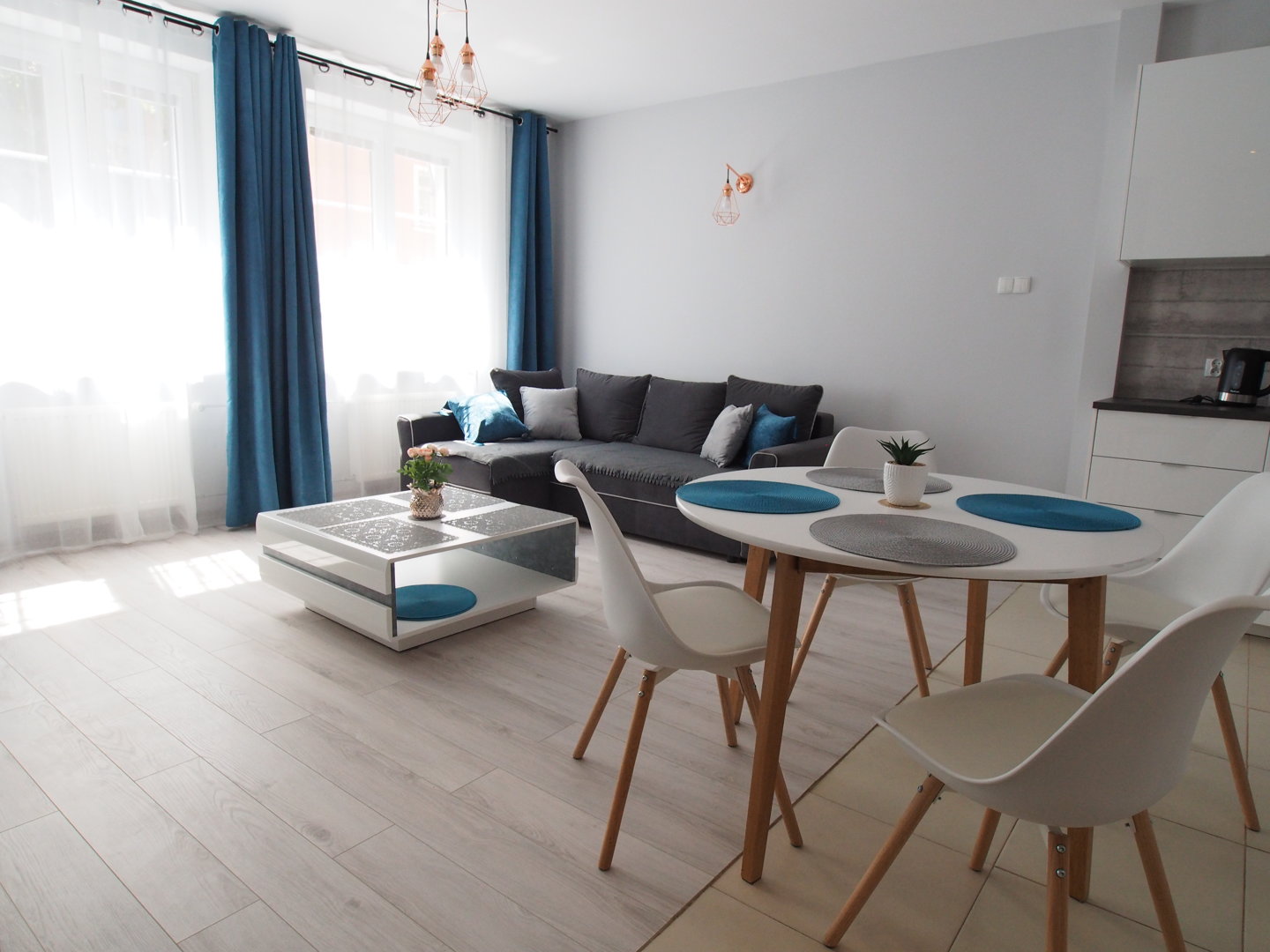Komfortowy apartament dla 4 osób. Mieszkanie składa się z centralnego pokoju z aneksem kuchennym i dwóch sypialni. Doskonała lokalizacja w sercu starego miasta. . Nowoczesny wystrój wnętrz.