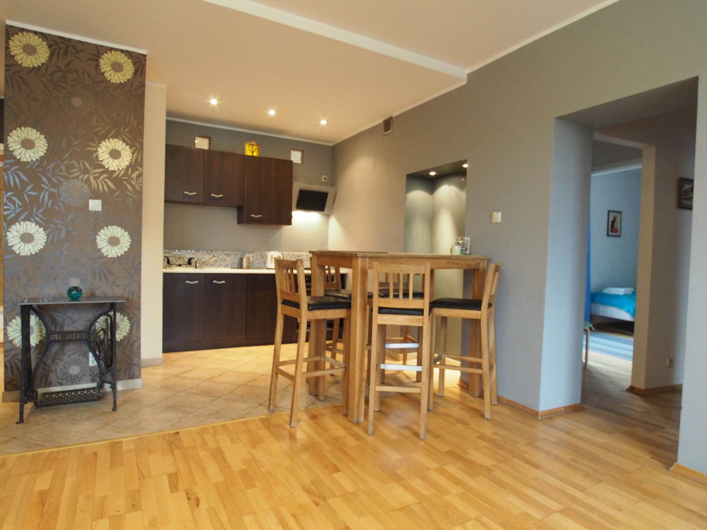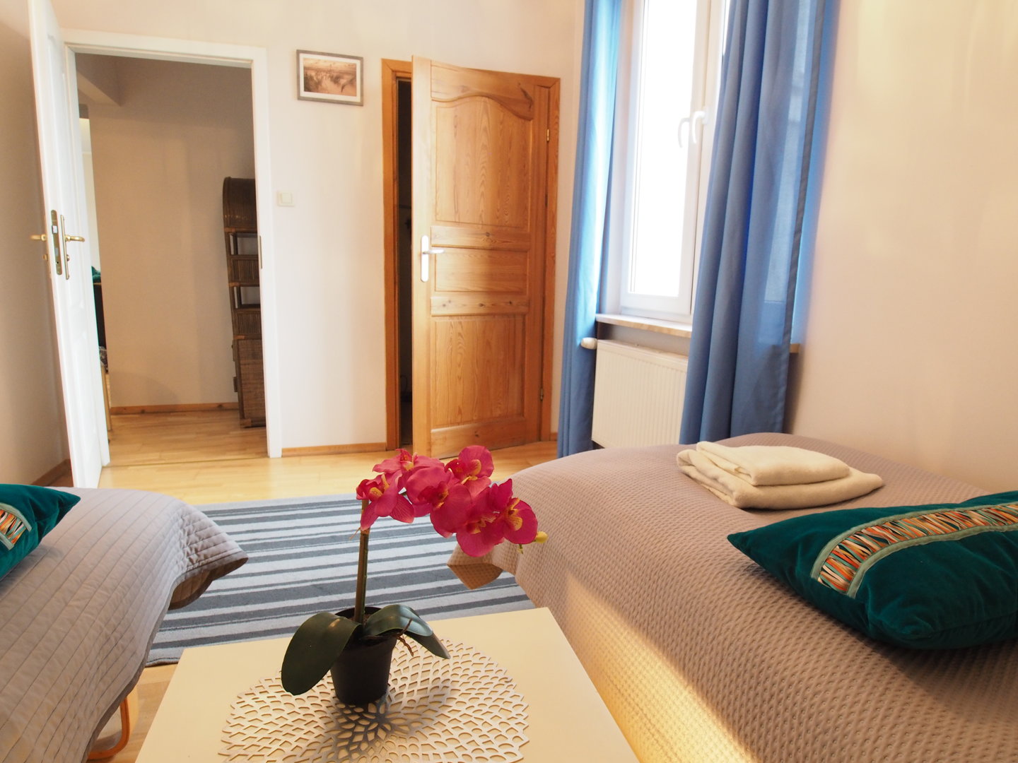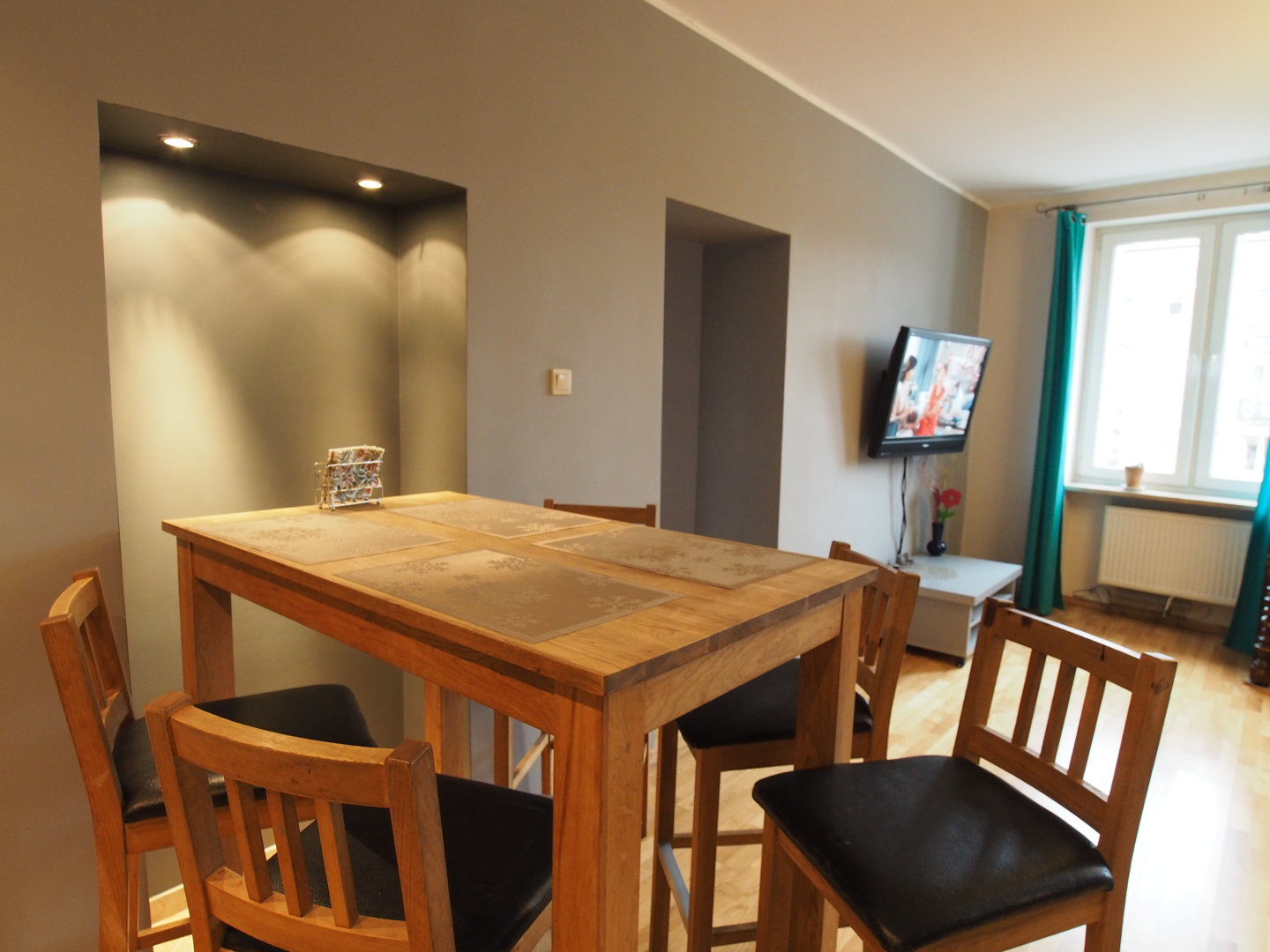 Komfortowy apartament dla 4 osób. Mieszkanie składa się z centralnego pokoju z aneksem kuchennym i dwóch sypialni. Doskonała lokalizacja w sercu starego miasta. . Nowoczesny wystrój wnętrz.