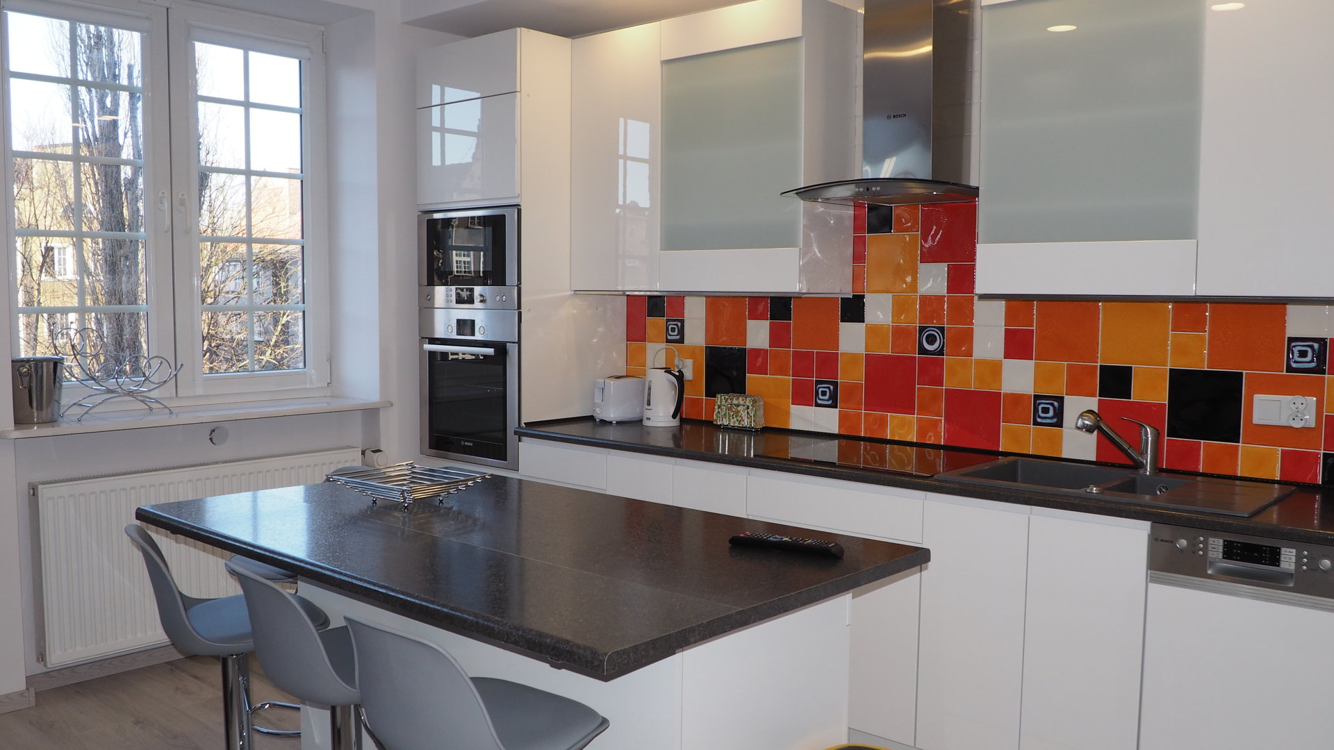 Komfortowy apartament dla 4 osób. Mieszkanie składa się z centralnego pokoju z aneksem kuchennym i dwóch sypialni. Doskonała lokalizacja w sercu starego miasta. . Nowoczesny wystrój wnętrz.