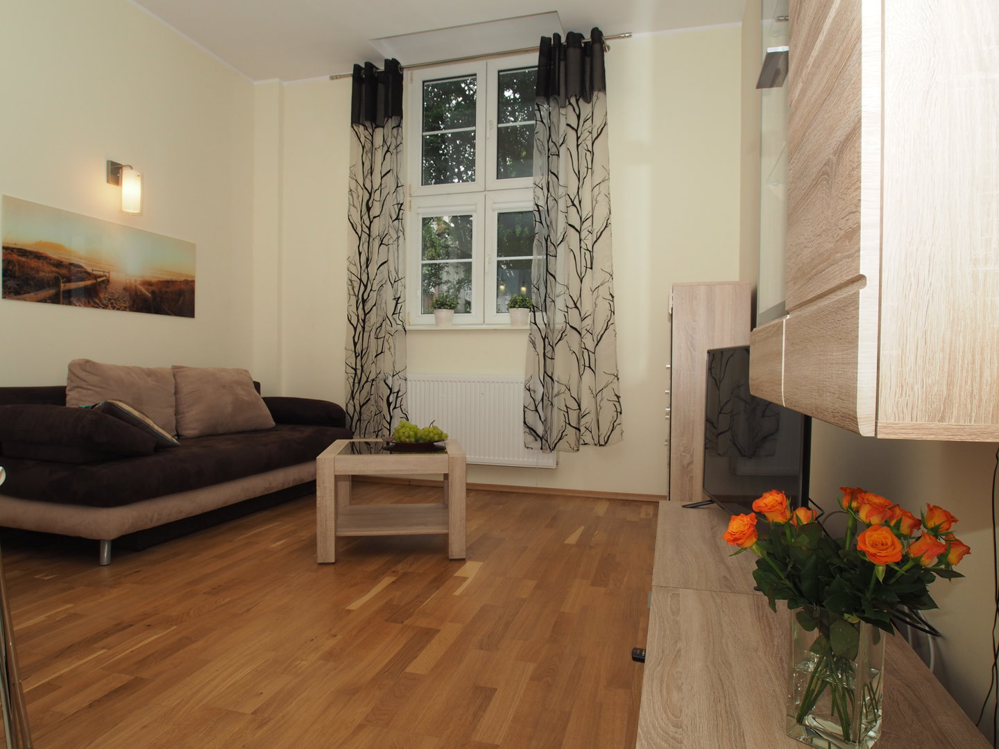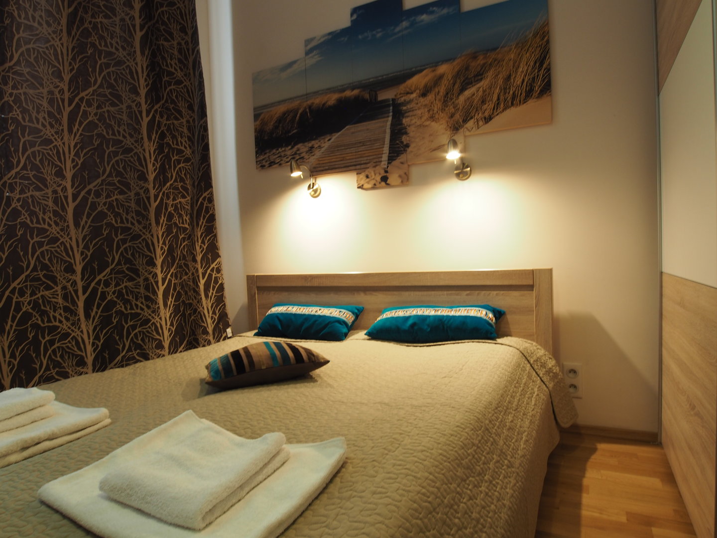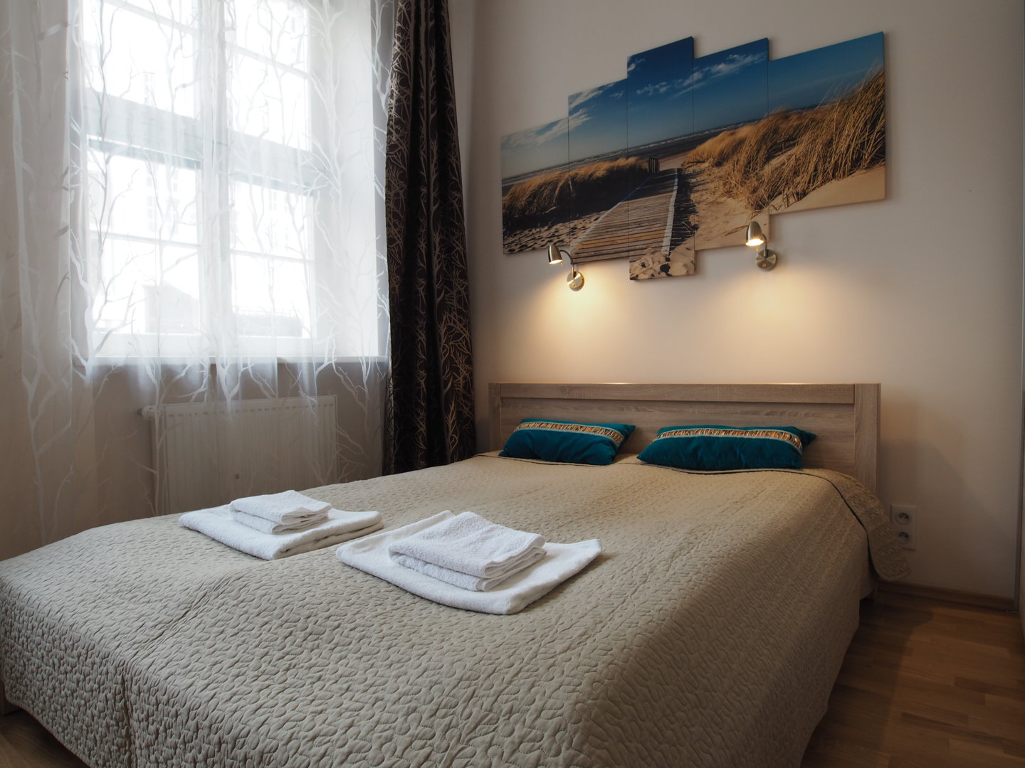 Komfortowy apartament dla 4 osób. Mieszkanie składa się z centralnego pokoju z aneksem kuchennym i dwóch sypialni. Doskonała lokalizacja w sercu starego miasta. . Nowoczesny wystrój wnętrz.