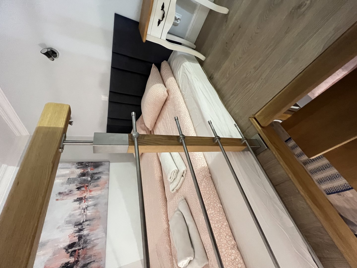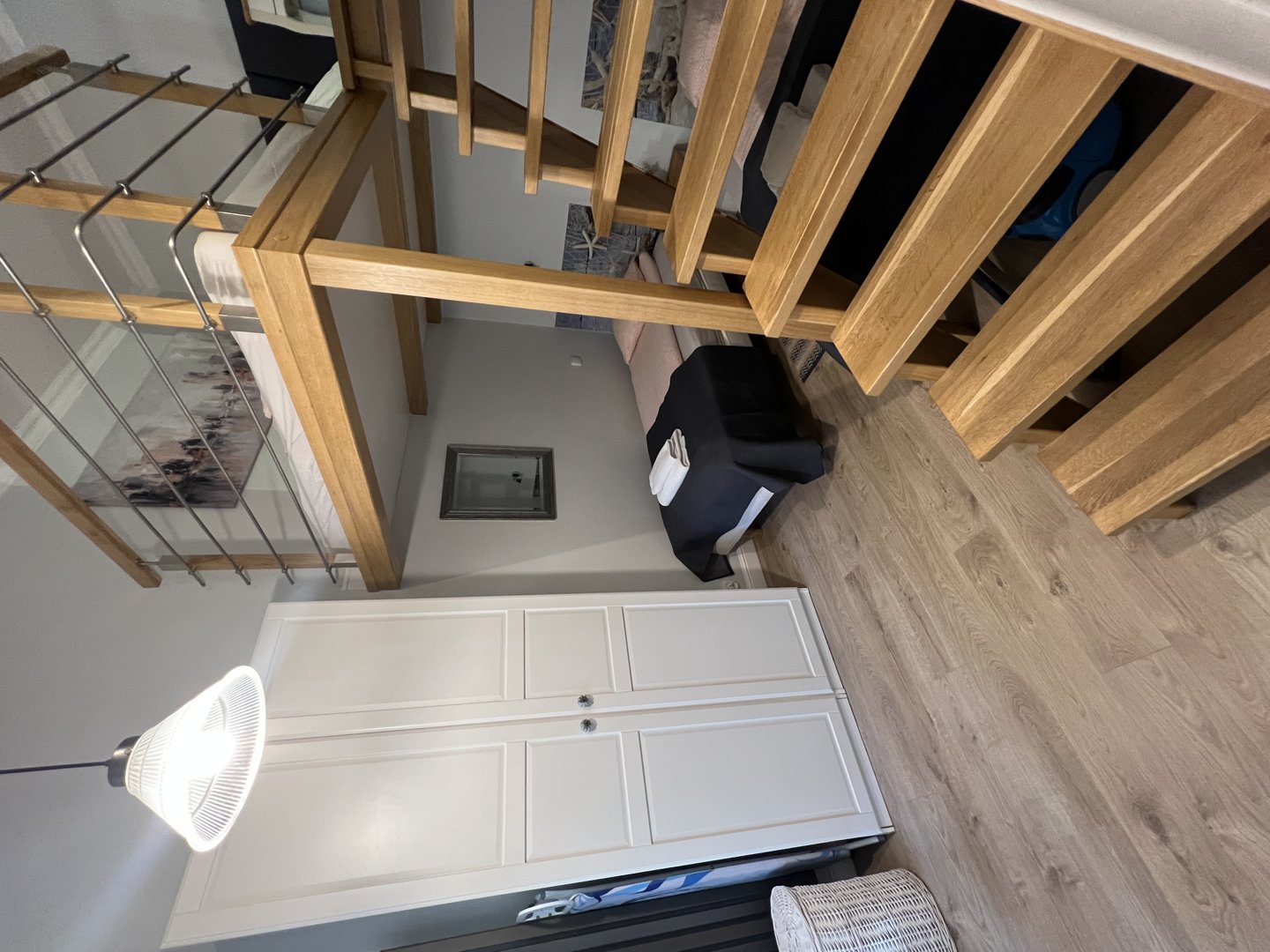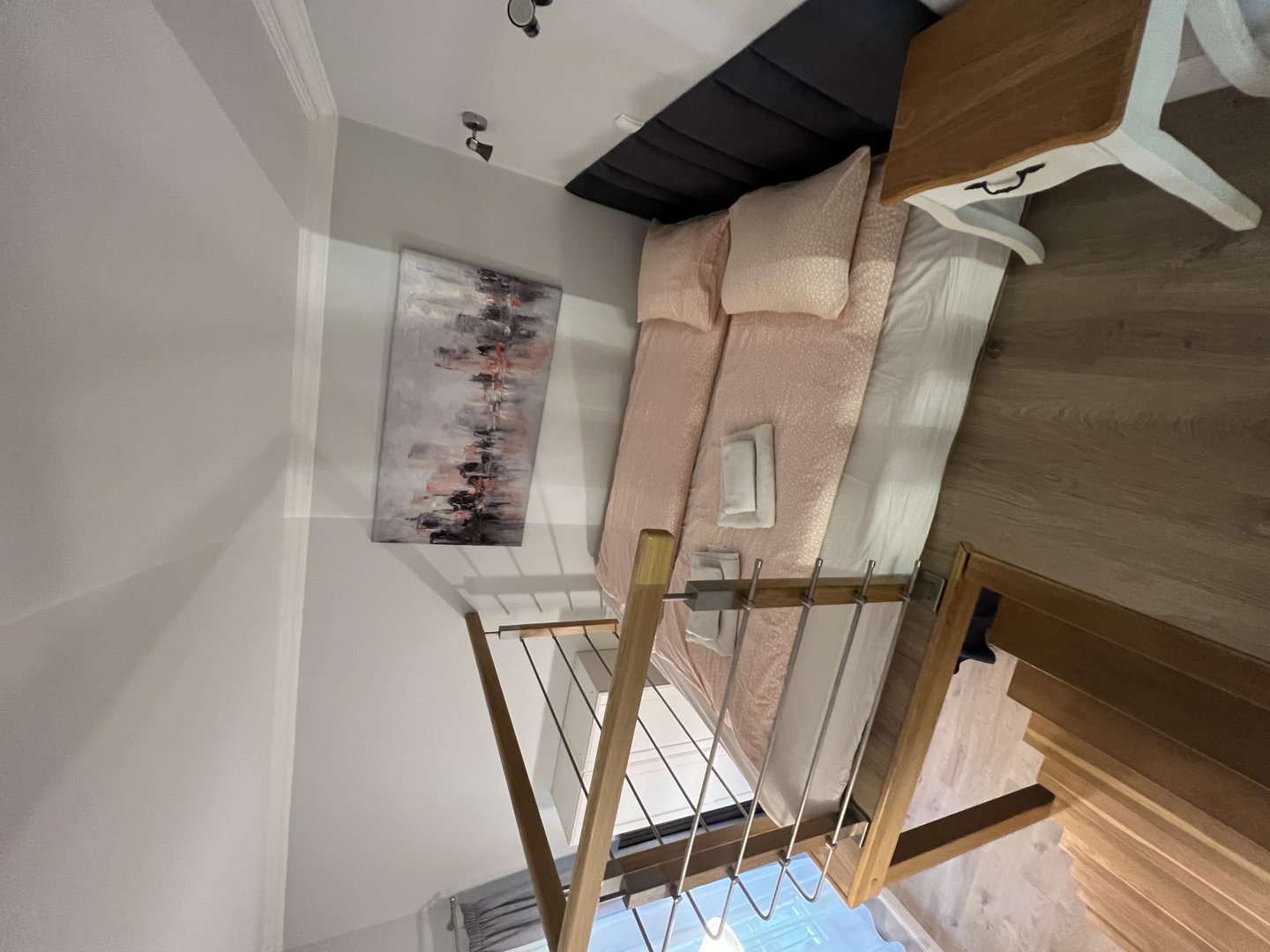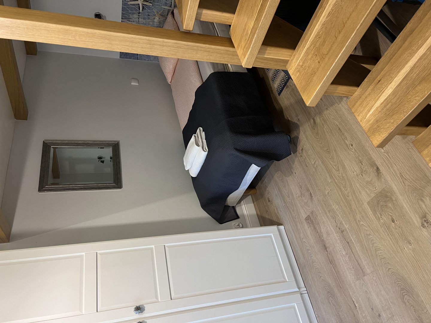 Nowoczesne mieszkanie typu studio z antresolą . Bardzo ciekawa aranżacja mieszkania wykorzystująca wysokośc pokoi na stworzenie dodatkowej przestrzeni do spania dla dodatkowych dwóch osób. Na pierwszym poziomie znajduje się salon z aneksem kuchennym. W salonie znajduje się duża sofa narożna o szerokości 140 cm po rozłożeniu. Sypiania oddzielona drzwiami z dwoma łóżkami po 80 cm szerokości typu twinbed. W sypialni znajduje się wejście na antresolę . Antresola ma obiżoną wysokość do 180 cm. Doskonałe miejsce do spania dla dzieci.